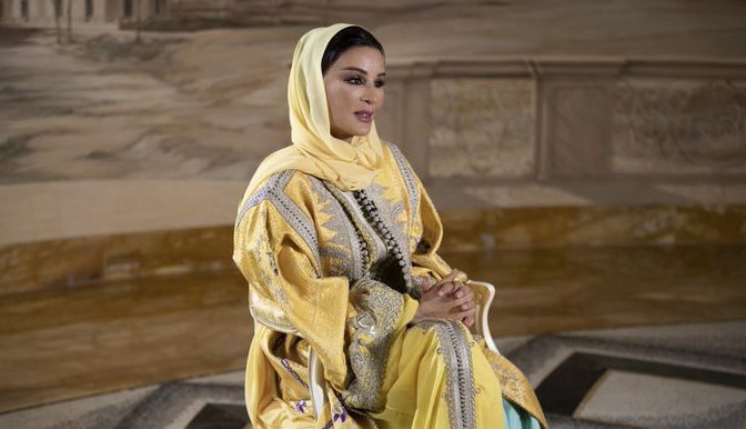 في قطر.. الشيخة موزة تتألق بالقفطان المغربي